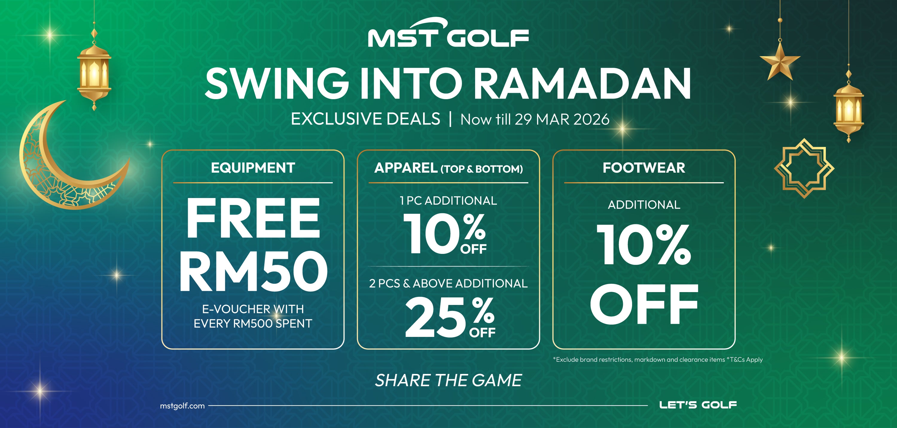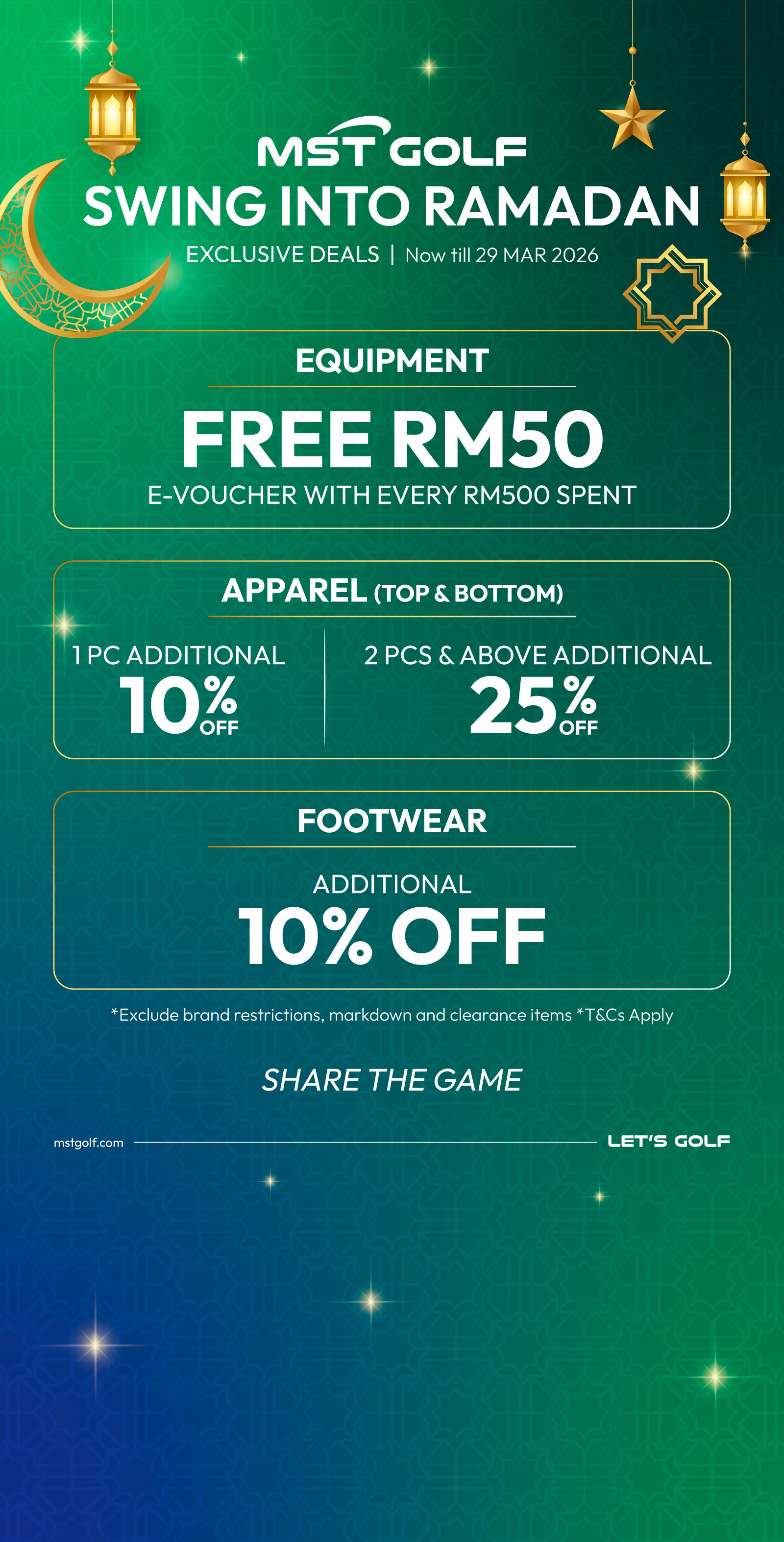 FREE RM50 Voucher with every RM500 spent on selected equipment.