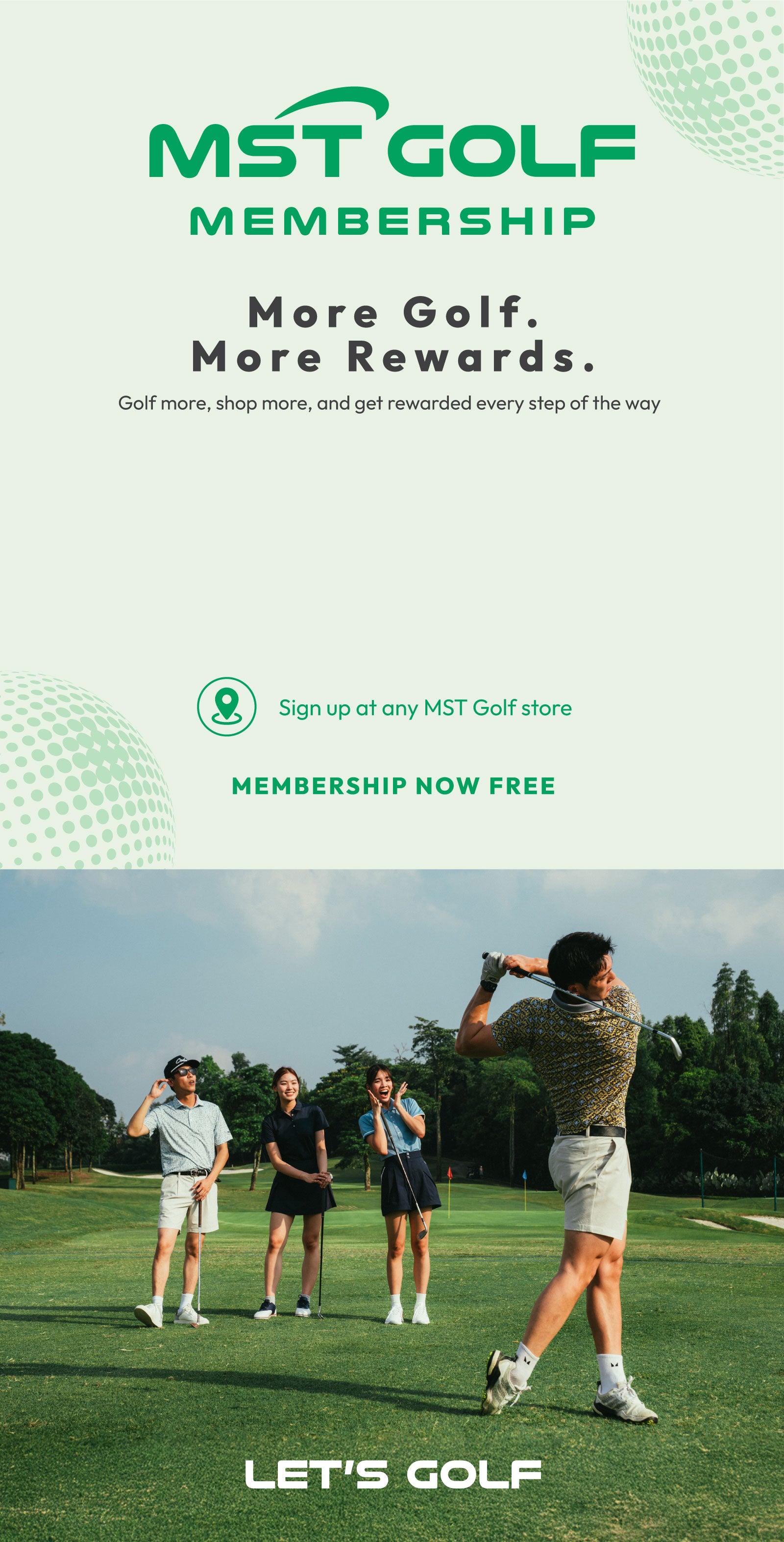 The MST Golf membership is MST Golf’s loyalty program that lets you earn points for purchases at MST Golf stores, MST Golf Arena, MST Golf Lab, and online at mstgolf.com. Points earned can be used to redeem products or offset value of future purchases. Members are also eligible to participate in member - only events, enjoy member exclusive deals & promotions. MST Golf Membership is free to join.