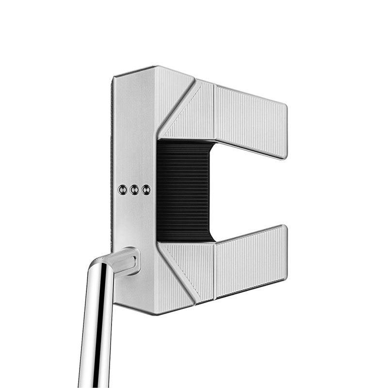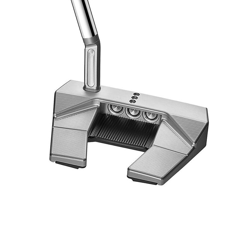 The evolution of the Phantom X 5.5 continues with a new, self-centering sole plate design, updated graphics and an all-new Pistolero Plus grip. The small slant—or “jet” neck—configuration remains unchanged, as do the solid face and body precision milled from 303 stainless steel and integrated with an updated aluminum sole plate and customizable stainless steel sole weights. Made to promote a more flowing “blade-like” feel with the stability of a mallet, the milled sight line on the topline provides alignment, while the refined design aesthetic exudes craftsmanship at every turn. A left-handed model is also available.