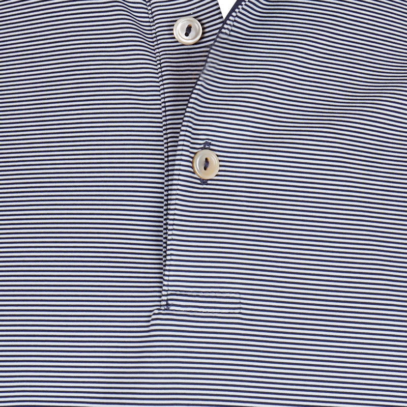 Experience comfort beyond the norm with Peter Millar Jubilee Striped Jersey Long Sleeve Polo that is designed to keep you neat and smart.